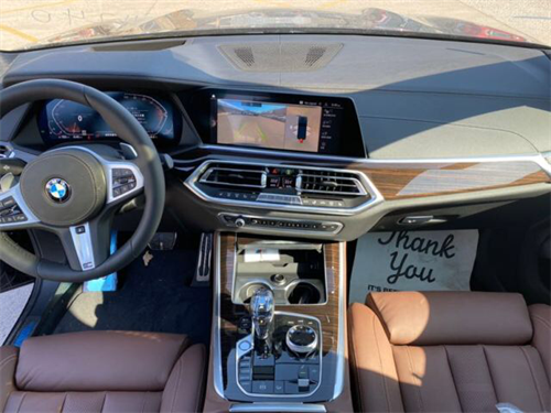 21款宝马X5内饰更加豪华的感觉,用了两块巨大的12.3英寸的屏幕,整车效果不错。大面积的皮质包裹,手感很好,粗大握感十足的皮质方向盘,带换挡拨片,方向盘加热等等,全液晶的12.3英寸的仪表,显示的内容相当丰富,并且显示分辨率和操作响应速度都是相当快,中控换挡区域最大的变化就是,档杆换成了全新的水晶档杆,整体的豪华感和科技感更加强,但是只有顶配才可以选择。