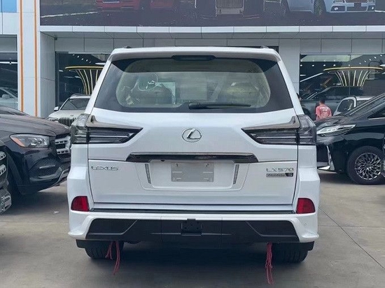 雷克萨斯LX570黑曜版前脸装配了大尺寸炭黑进气格栅,两侧同时装配了矩阵式LED头灯组,回旋镖式LED日间灯带进一步提升了车型辨识度。车身侧面配备了熏黑多辐式铝合金轮毂,并装配了黑色涂装的金属迎宾踏板。车尾隐藏式排气布局,品牌LOGO以及车尾标识也一并进行了黑化处理。