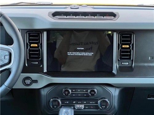 22款福特烈马Bronco车内采用硬朗的设计风格,中控台设计主次分明且有层次感,用料也厚实,多功能方向盘造型运动,中控屏幕采用内嵌式的设计增添了车内的时尚感,按键布局合理,档把设计精致,座椅宽大厚实,空间宽敞,实用性强。