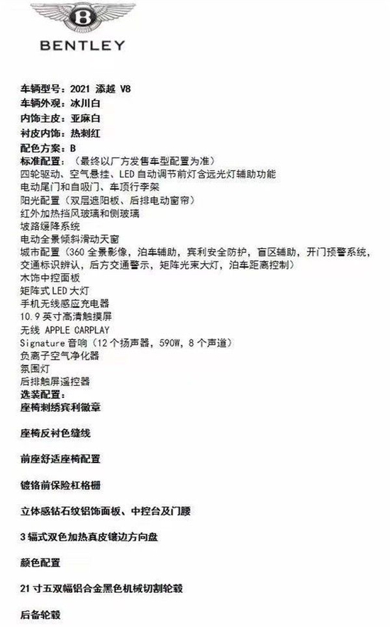 2022款宾利添越现车进口,全国购车皆可办理分期付款。现在进店购车可享商家更多价格优惠,机不可失,欲购从速,随时看车,当日提车,详情电询