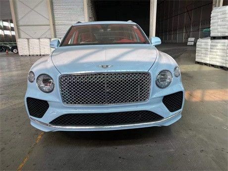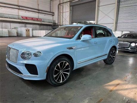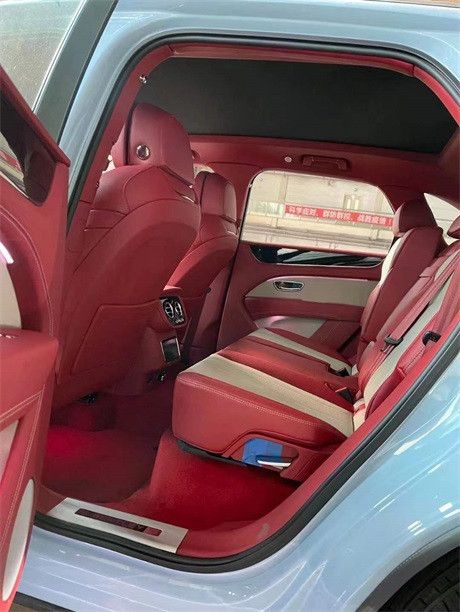 2021款宾利添越绚蓝/亚麻白配热刺红配置:金属漆,颜色包,前排舒适座椅包,黑色钢琴内饰板,撞色缝线,21寸轮毂,加热双色方向盘,刺绣宾利徽章,氛围灯。