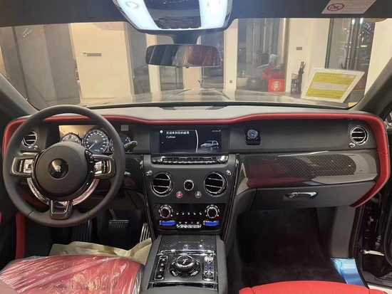 22款限量版劳斯莱斯库里南内饰延续了全新幻影的设计风格,整体用料依旧一如既往的奢华高贵,中控采用大面积实木打造,配合方向盘上的实木点缀,既复古又豪华。中控屏幕尺寸为10.2英寸的屏幕,轻触车门把手上按键就可以电动关闭,后排控制台与前部是断开的,在狭窄环境停车后排乘客可以选择任意一侧下车。