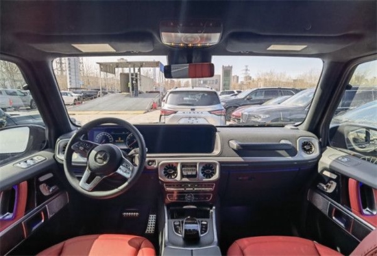 奔驰G550搭载的4.0L双增压V8发动力,搭配9挡手自一体变速箱,最大马力422马力,最大扭矩610N/m,车身尺寸 4764*1867*1954,前后轴距为2850mm,最小离地间隙205mm,油箱容积96L,百公里油耗市区约14.5L,高速约11L。强劲的楔形特征以及醒目的奔驰车标使其在静止不动的时候都能让人感受到他的奔放气息。