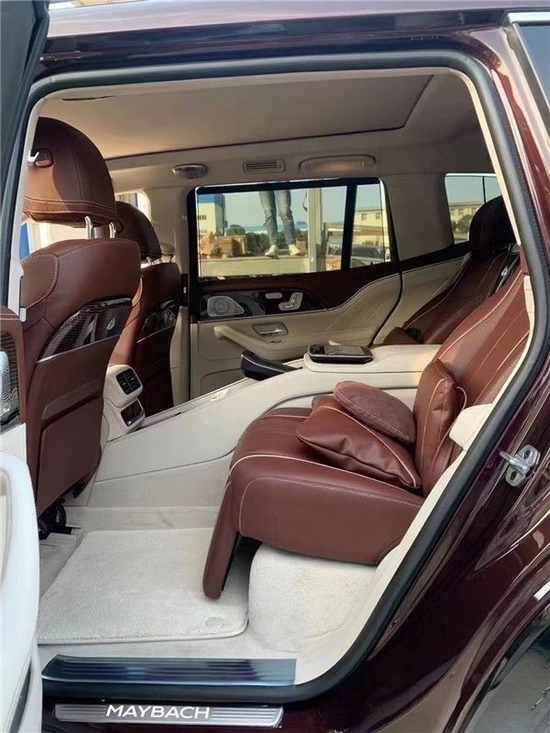 22款奔驰迈巴赫GLS (配置|询价)600 388万 颜色:黑红双拼/米红nappa内饰 选配:棕色条纹木饰板。木制真皮方向盘。23寸迈巴赫轮毂。4座。冰箱组件 标配:550匹马力。9速自动变速箱。4Matic 4驱系统。Airmatic空气可调避震。E-Active 魔术车身。COMAND系统导航。环车影像。电吸门。多色氛围灯。发光迎宾踏板。siriusXM无线电。苹果carplay。安卓系统。前后主动座椅调节按摩。空气香薰系统。增强视频导航。Burmester高低3D环绕音响。前座座椅加热通风。一键启动。无钥匙进入。全景天窗。4区自动空调