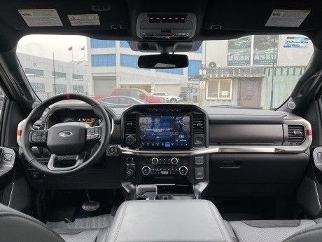 22款福特F150的内饰采用独特的中控台和门饰板面漆和真皮包裹的方向盘,方向盘可以上下前后调节。轴距3690mm,拥有宽敞的内部空间,全车黑红搭配的电动调节真皮座椅,用豪华舒适来形容一点也不为过。特殊定制具备了越野车更高的防震能力。第二排拥有通风加热功能,而第三排三人座椅可前后移动放倒平躺,更有一键式的灯光控制。福特F150皮卡做到越野性能,同时拥有了商务SUV的豪华与舒适,抛开外表,简直可以跟MPV媲美。