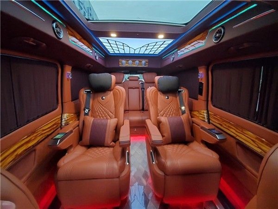2022款进口奔驰V250商务车棕色是一种低沉具有浑厚力量感的柔和暗色,它营造出整车内饰的寂静气氛,同时使用具有闪光感的金丝线穿插在暗色内饰中,使奔驰V250改装活跃了气氛,增添了些许生动,同时星空顶造型的加入,使得整个黑夜韵味涌现明朗与安详。