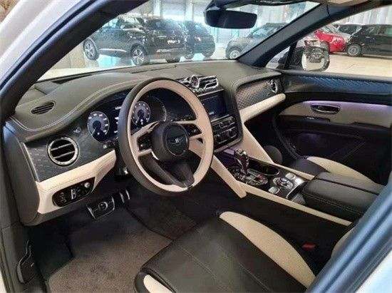 2021款宾利添越4.0T V8美规内饰保持奢华的主旋律,双翼造型为设计理念,延续了宾利家族的造型风格,木质饰面与金属元素搭配相得益彰,都采用非常珍贵的木材和皮革;真皮包裹的方向盘手感无与伦比,这是一台为驾驶者打造的豪华越野。