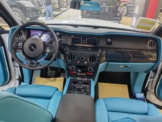 内饰方面将极尽奢华,采用真皮搭配实木以及金属装饰,整体设计与幻影 (配置|询价)类似,但方向盘更厚实,但是体型缩小。劳斯莱斯表示库里南是一款以驾驶为导向的车型,更侧重驾驶体验。全新的全液晶仪表盘采用三圆仪表设计,辅以虚拟表盘和指针。新车提供后排3座和2座独立座椅设计。四座版车型增加宽大的中央独立扶手,并可根据定制化增加冰酒柜、桌板等等。
