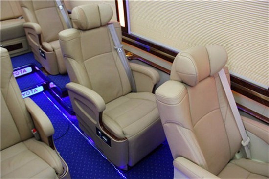 丰田考斯特改装商务车,在内饰的设计上尤其是在座椅的选择上各位用心。原装进口的埃尔法 (配置|询价)座椅,360度可旋转的杭州首首长席。可折叠平方的4连座椅,或者是设计成具有沙发床的布局,丰田考斯特在座椅的布局和材质的选择上表现出了对于乘驾人员的关心体贴。
