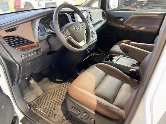丰田塞纳四驱LTD的内饰:桃木镶嵌的中控台更显格调高雅,方向盘集成多种功能,操作便利。方向盘集成多种功能,操作便利减少对安全的影响并且带有语音控制。