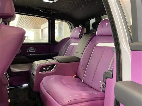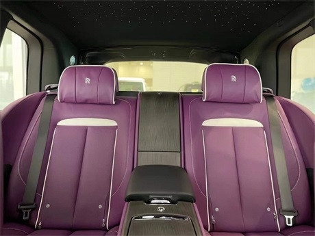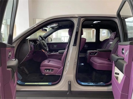 劳斯莱斯库里南 现车 80X含消费税 外观:风暴灰 内饰:定制紫-黑 选配:四座 前后排座椅通风 流星顶 双腰线。