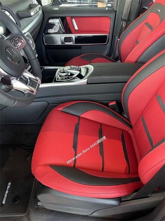 图中所展示的这款车就是黑红配色“奔驰G63 (配置|询价)”。大体的轮廓上这部车已经没有太多可以改变的地方了,整部车和以往一样依旧是一副“硬汉”的形象。正面上直瀑式的进气格栅很有力量感,值得一提的是这部车的前包围进行了加强处理,让本就非常硬朗的外观又多了份霸气感!环装的炮眼式前大灯依旧是这部车最亮眼的地方,点亮的瞬间更是彻底被征服。中网的奔驰LOGO显得格外的光彩夺目!
