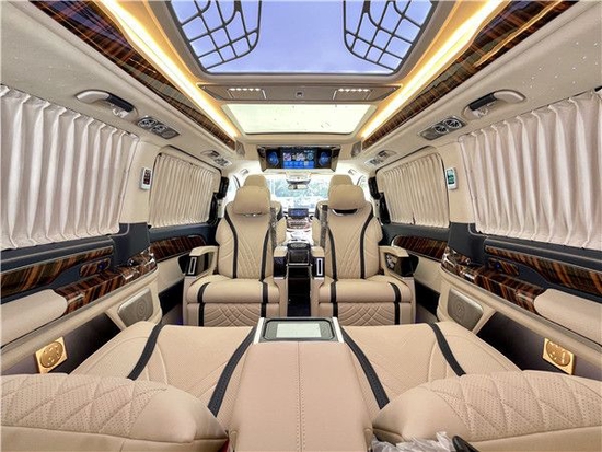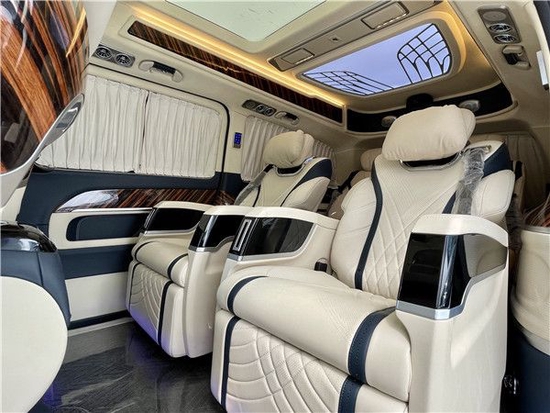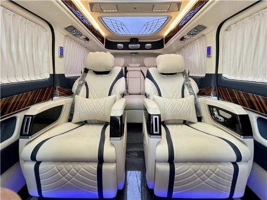 第二排座椅安装进口首席航空座椅,加热通风按摩功能齐全,最大限度减缓您的乘车疲惫。奔驰V260L改装商务车无高顶无隔断简单改装八向电动调节:电动头枕,电动腿托,前后电动调节,电动靠背调节。奔驰V260L改装 每一席座椅皆享尊贵定制级的豪华舒适。