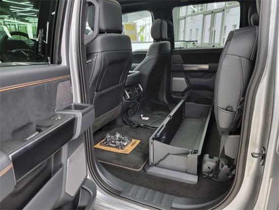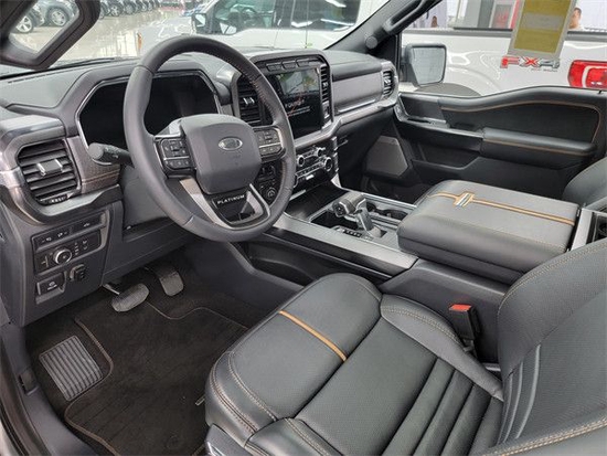 2022款福特F150内饰采用独特的中控台和门饰板面漆和真皮包裹的方向盘,中控台部分辅以银色饰板装饰,六指针仪表盘的设计有些后工业时代的复古风格,采用带电冷热功能的可记忆式皮革座椅,头枕四向可调,搭配铝饰条和黑色钢琴烤漆内饰可电动升降的后窗带隔板和电热除霜功能。