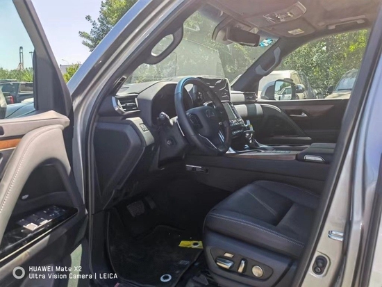 22款雷克萨斯LX600后座手动遮阳板 一键式自动排列电动折叠座椅 动力倾斜和伸缩转向柱 加热的木质和皮革饰边方向盘 开孔木饰条 主题环境照明 发光的门槛 使用 HOMELINK ®自动调光车内后视镜牵引能力为 8,000 磅的牵引组件和挂钩 加热外后视镜 电动倾斜和滑动天窗 带踢脚传感器的电动后门 前照灯垫WINDSHIELDWIPER DE-ICER 叶片尾灯 22 英寸锻造合金轮毂 12.3英寸触摸显示屏 8英寸多信息显示屏 平视显示器 6个USB端口 Mark Levinson 25扬声器2400瓦环绕音响 多地形模式 带电子锁定中央差速器 自适应悬架。