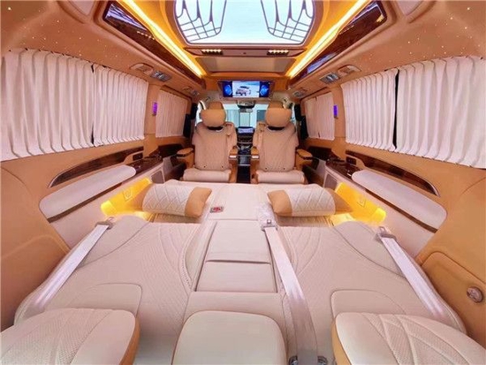 奔驰V260L改装七座豪华MPV商务车房车,C照即可上路,奔驰V260L改装车,新车采用了全新奔驰家族化前脸设计,双横幅前进气格栅搭配全LED大灯,整体风格庄重而肃穆。