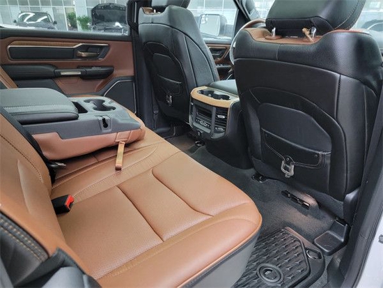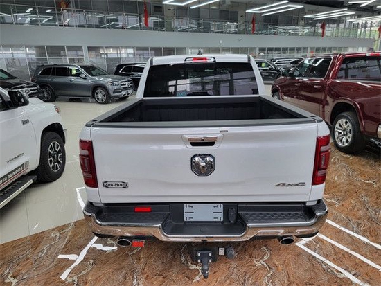 配置:5.7 HEMI(4/8缸切换、紧急闭缸),V8发动机,8速手自一体变速箱,全铝车身(钢铝混合),新款外观,双LED透镜前大灯 (自适应远光),LED日行灯,LED雾灯,LED刹车灯,全车镀铬套件,20寸铝合金轮毂(普利司通轮胎),全尺寸备胎,电动踏板,全景天窗,电动滑动后视窗,后排隐私玻璃,隐私玻璃除雾器,智能卡进入,一键启动,分时四驱,400米遥控启动,电子旋转档,后尾箱一键开启,后尾箱遥控开启,真木内饰,镀金色内饰条,真木方向盘,真皮座椅加刺绣,主驾驶座椅记忆,后视镜记忆,前排电动座椅,后排手动调节座椅(带扶手箱),前排座椅通风加热,后排座椅通风加热,方向盘加热,电动调节油离踏板,变道辅助,环车影像,自动泊车,无线充电,Carplay链接,USB(5个)/USB-c(4个)链接,12寸大屏娱乐系统,哈曼卡顿音响,蓝牙连接,自动空调,后排出风口,超大储物箱,后排私密储物箱,后排折叠收纳箱,新款长角号Logo仪表显示器,多功能方向盘,定速巡航,电动折叠后视镜,后视镜加热,内外防眩目后视镜,前后驻车雷达(可开关),感应雨刷,喷涂内衬,后斗LED照明,液压后尾门。具体参数:车长:5916mm,车宽:2084mm,车高:1971mm,货厢长度:1711mm,轴距:3672mm 轮距:1729mm,货厢容积:1940L,载重质量:835kg,最大拖挂质量:3715kg。