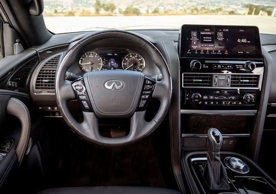新款QX80内饰布局也与现款车型基本一致联系电话:18812637416刘经理 (同号微信),但中央12.3英寸的悬浮式中控屏取代了现款车型上的小屏幕,同时还支持Apple CarPlay和Android Auto手机互联,以及手机无线充电,自动空调、InTouch服务等功能。同时,车内第二排可选装双人独立座椅,第三排座椅则是标准配置。