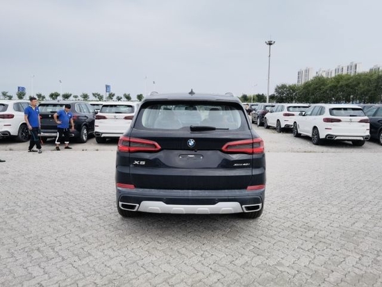 宝马X5外观相当霸气,外观设计硬朗犀利,整车尺寸比之前的车型略大,更大的进气口和延伸至前中央进气格栅的冰铜车底护板,虽然尺寸更大宝马一贯对称的风骨不失宝马X5的独特之处在其动感的线条轮廓中一目了然。一些最新的家族设计也被用于一些设计元素的创新。前格栅变化明显,更显修长,并与大灯融为一体。