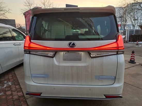 雷克萨斯LM300车身侧面与埃尔法保持了一致的轮廓,包括细节处的线条都算是一个模子刻出来的,唯一的区别在于B柱样式不同,而且雷克萨斯LM将“L”型元素同样运用在这个部位。车顶造型有别于日常见到的向后方下倾设计,而是采用了略微上扬的趋势,配合宽大的车尾顶部扰流板,带来一丝飘逸感;车身D柱表面的亮黑色处理,从后方营造了浮式车顶效果;车身表面起伏的线条勾勒,在光照下营造了颇显立体的视觉效果。