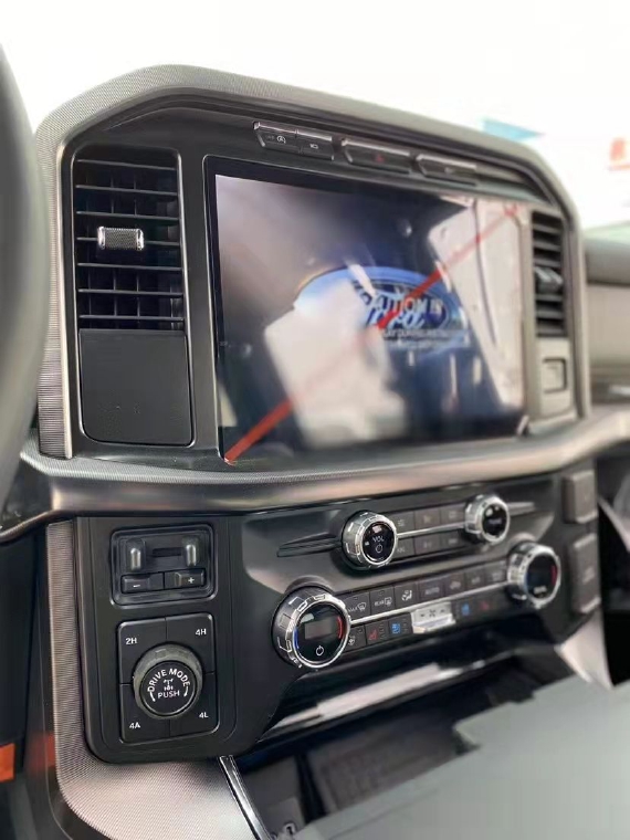 白金版福特F150中央控制区搭配了触控式显示屏,其下方则是多媒体控制区及空调面板,采用旋钮+物理按键的组合。中控功能区域可分为三个小控制区,最上端为音响控制及导航控制,中间为收音机调节控制,最低端为空调及座椅加热控制。