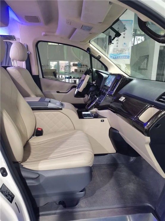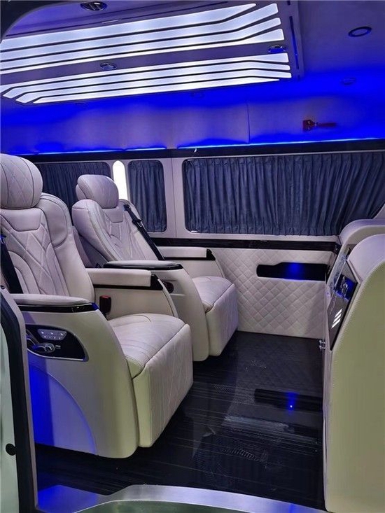 丰田海狮整车升级了加强型的隔音隔热处理,车内带空气净化系统,无线充电系统。在进门侧加装了氧化铝脚踏带迎宾灯的,整车都是采用纳帕级皮质进行包覆的,侧壁桃木装饰,手动百褶窗帘,后舱暖风系统,最后说说棚顶灯光,这个有智能触摸控制系统。灯关超级棒。