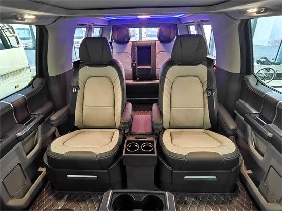 2022款新款福特勇猛者外形彪悍,给人一种非常震撼的感触,该车车身长5.89米,宽度和高度均在2米以上,经过激光焊接工艺,将原车头和车斗拓通成为一个全体乘用车厢,更让乘坐者享用到了陆地商务舱和航空头等舱的待遇。