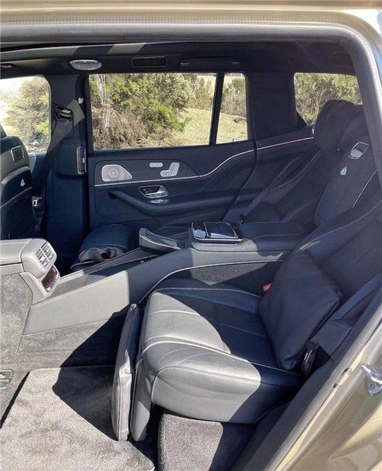 奔驰迈巴赫GLS600后排双独立行政座椅,椅背倾斜角度最高可达43.5度,后排腿部空间最大可达1.34米,带来头等舱级乘坐体验的同时,车内还放置了冷藏箱以及梅赛德斯-迈巴赫原装银色香槟高脚杯此外,梅赛德斯-迈巴赫GLS 600 4MATIC搭载4.0升V8发动机与48伏智能电机,百公里加速时间仅为4.9秒。