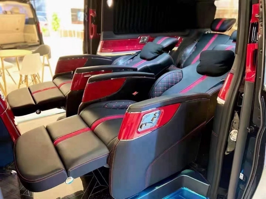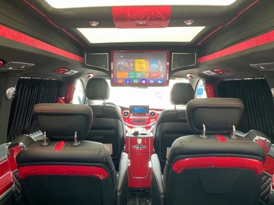 奔驰V260L红提香延续了奔驰家族经典的前脸,多层次的格栅前脸,中控的奔驰大标识,以及两侧的鹰眼式大灯,打造出丰富的美学视觉享受,同时21款全系标配空气悬挂,这是在丰田埃尔法 (配置|询价)及雷克萨斯LM (配置|询价)300车型上都未出现的配置,足足为用户节约了四五万。各位朋友如果对商务车(奔驰 丰田 豪华客车 改装)感兴趣的话 请咨询许经理13550036896(微信同号)