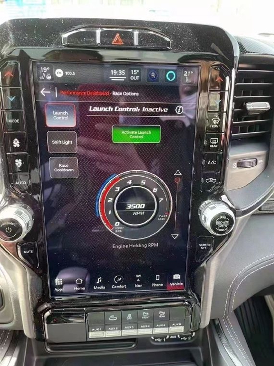 22款道奇霸王龙内饰部分进一步强化了其高性能版本的形象,中控台和座椅随处可见的TRX标识便是最好的例证。同时,作为道奇家族的旗舰车型,新车还配备了12英寸竖置中控屏幕,除了支持蓝牙、导航和车载Wi-Fi等常见功能,还支持AppleCarPlay和Android Auto手机映射。