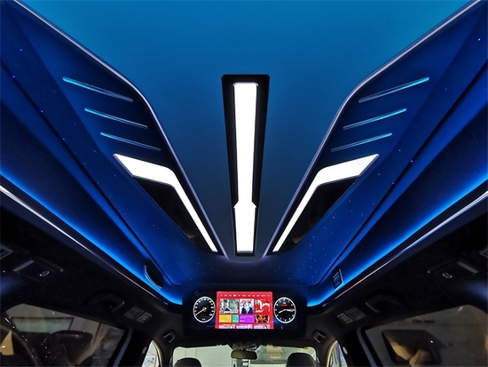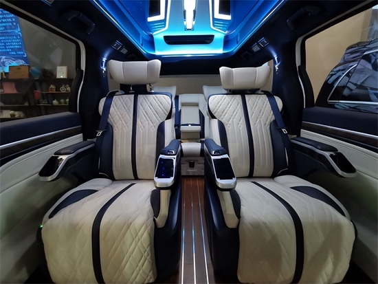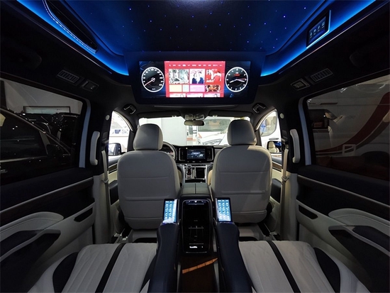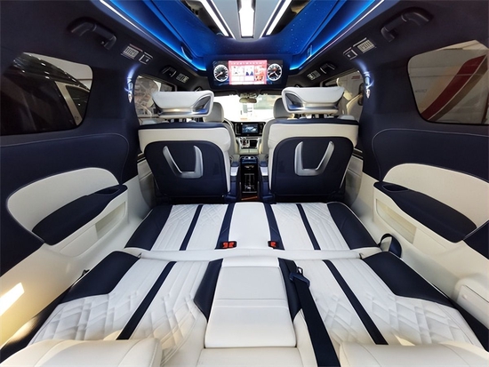 这款车型的重点在于内饰,前排中控台面拥有原厂全液晶仪表盘和镶嵌导航屏幕,中控娱乐大屏尺寸达到10.1英寸,而且有本土开发互联网车机系统,并不像一些进口车型的车机系统不太好用。后排依然是5个座椅,整车内部采用的是2+2+3布局,第2排两个航空机头等舱奢华座椅非常舒服,通过触摸屏就能够控制通风加热按摩,当然也能控制各种各样的平躺角度。