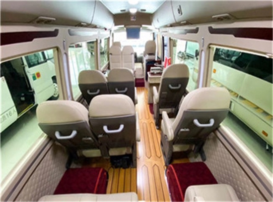 主要是司机操控比较方便,毕竟这个车子还是比较长的,这样就提高了倒车的安全系数,顶棚上呢一般加装一个19寸的电动DVD显示器,方便在上下班的路途过程中看看电影播放一下公司的最新资料。地板方面一般采用进口地板革,主要是提高底板的耐磨性,再就是美观更方便司机打理,如果遇到雨雪天等乘客下车以后,直接可以用拖布擦一边就可以弄得干净利索了。