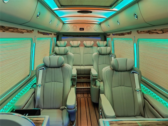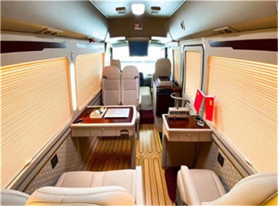 咱们还可以加上金标,让原本中庸的车身变得高贵华丽,然不失纯朴!在内饰方面所做的文章就更加足了!里面咱们可以把所有的东西更换一个遍,让他再也找不到原车内饰的影子,这里面包含了丰田考斯特的操控台内饰,顶棚、侧壁、地板、座椅玻璃、窗帘、音响、灯光等等一些列的内容!座位数同样也发生了不小的变化,根据咱们实际的用途,咱们可以划分为丰田考斯特通勤版车,一般所包含的座位数为丰田考斯特23座、20座 19座像这一类的车子一般改装都相对来说比较简单一些,操控台一般都加装一个导航DVD系统,附带着来一个倒车影像。