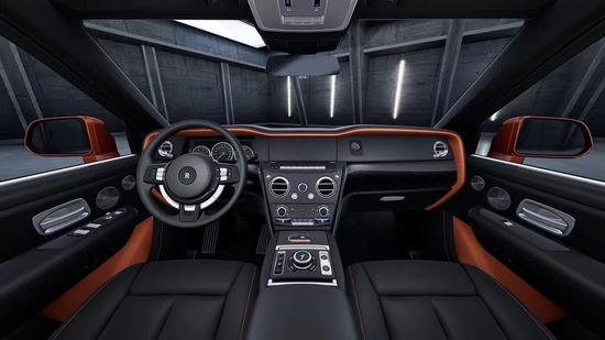 22款劳斯莱斯库里南内饰将劳斯莱斯的奢华与简洁对称的功能之美融为一体。中控面板的边框由手工打磨的金属条包裹,不仅将上部的仪表板和中部的控制台连接起来,更通过容纳仪表板上的横向设计元素,增加了掌控感。三幅式设计的方向盘看上去尺寸不小,足够厚实。中间多功能控制区有实木点缀,以至于开着库里南也有一种生活的仪式感。