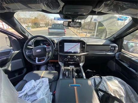 2021款福特F150车内配备标准独特的皮革和布艺装饰的座椅,驾驶员侧的电动十向调节。这些座椅同时具备记忆功能。中央控制区搭配了触控式显示屏,其下方则是多媒体控制区及空调面板,采用旋钮 物理按键的组合。中控功能区域可分为三个小控制区,最上端为音响控制及导航控制,中间为收音机调节控制,最低端为空调及座椅加热控制。在内部空间的庞大基础上,福特也提供了非常具有舒适性与服务性的内饰配置。另外,新车还配备了一块大尺寸的全景天窗。