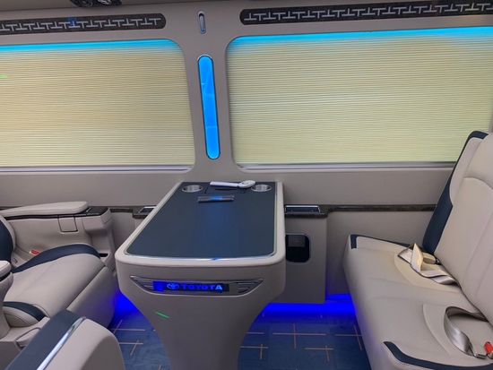丰田考斯特改装的独特设计可以体现在改装的每一个方面,但是这种独特却在展示与众不同的同时也表达出自己的尊贵设计,在外观的设计上来说,丰田考斯特改装商务车车身长度为7.005米,身宽度为2.040米,车身高度为2.774米。对于一辆舒适的商务车来说,丰田考斯特改装车真正的做到了外观与内饰的结合,质量和颜值的并重,丰田考斯特改装商务车,尊贵源于与众不同的贴心的设计,丰田考斯特中空隔热隐私玻璃,国内首创柯斯达中空隐私玻璃,隔热隔音的完美组合,车内乘坐人员在享受旅途清凉下同时保证了乘客的隐私性,同时车内配备了车载冰箱、顶置长型荧光灯。