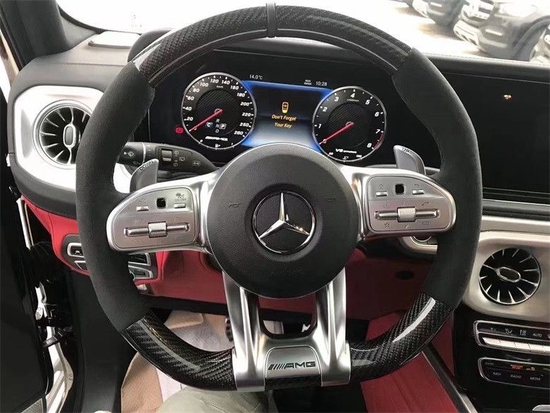 21款奔驰G63内饰方面其实才全新一代G级最大的变化。新车换上了奔驰最新家族式的内饰设计,这无疑让G级拥有了旗舰机应有的豪华感,不过经典的副驾驶席扶手和三把锁的开关键依旧延续了经典设计,并设置在中控台最显眼的位置。其中双12.3英寸高清屏,虚拟仪表盘与中控液晶屏融为一体,视觉上形成一个宽屏驾驶舱,中部的涡扇式空调出风口也颇具设计感,还大量采用了皮革的包覆。另外,新一代G级还对驾乘空间也进行了优化。