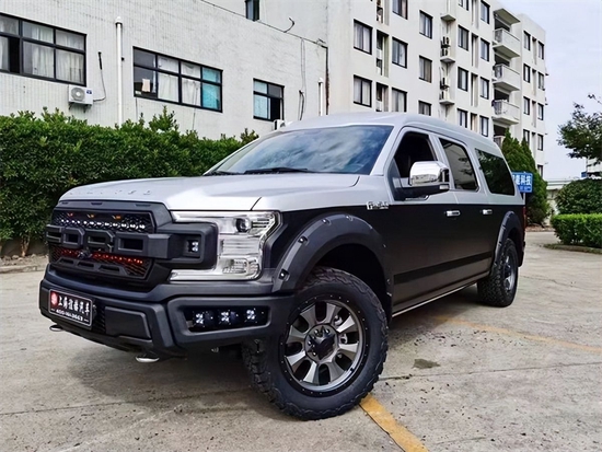 不用强制报废皮卡你见过吗?之前我们做了一期福特勇猛者的视频,受到了很多朋友们的关注,那么今天我们再来聊聊这台性能超强的猛禽版勇猛者其实玩改装的最高境界就是看似没做什么改装,但是懂行的人一打眼就得竖大拇指,这台车可不一般呐。其实它是一台F150,但却又是一台既能商务又能越野的混搭风格客车。外观方面:Vx:YH_ZF-2020——1 3 3 2 1 9 5 6 6 7 9福特勇猛者在完美的诠释美式肌的同时让他看起来更像一位强横的斗士。