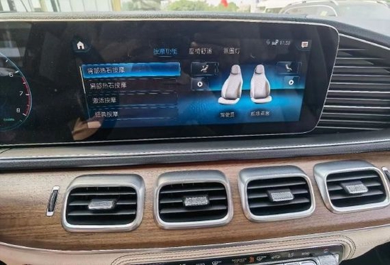 奔驰GLS580内饰采用了很前卫的设计,新车采用了三幅式的运动方向盘,中控大屏和液晶仪表采用了连体式的设计。全新奔驰GLS580的空调出风口采用了方形设计,它的中控台上的面板采用了很有质感的木纹装饰,中间的空调出风口下方的按键质感也不错。