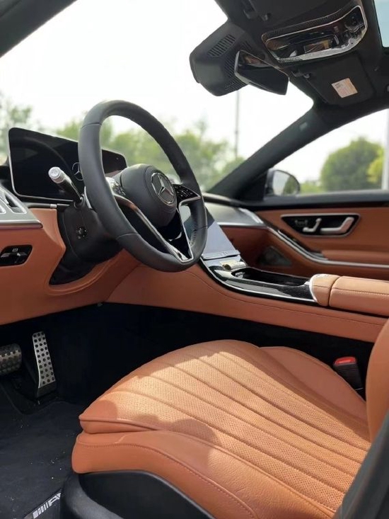 22款奔驰S500的中控台垂瀑式中央触控屏从中控台纵向延伸,凸显出了简约的设计感。整个内饰的豪华感当然是无须质疑,触手可及之处几乎全用上了皮革包裹,配合带263个LED单元的动态氛围灯进一步升华了内饰氛围感。AMG Line的方向盘通过对造型的重新雕塑,变得更加立体。