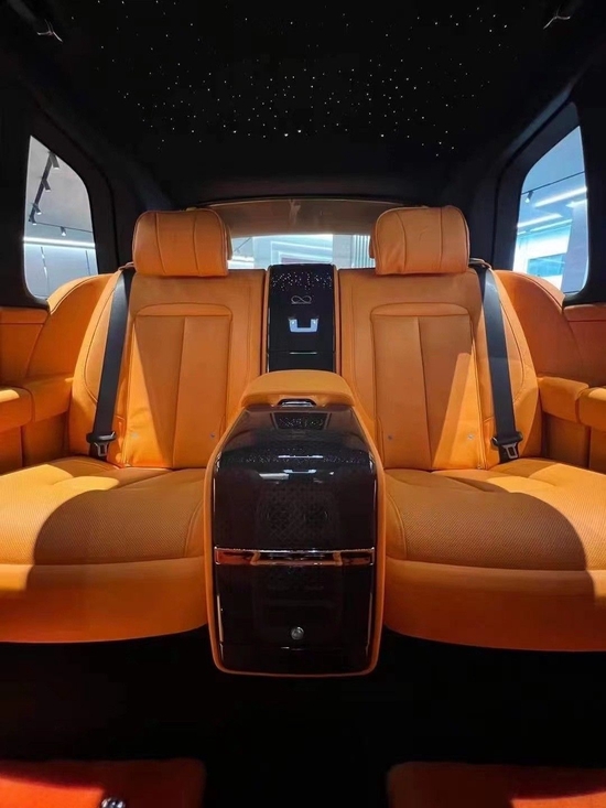 劳斯莱斯库里南内饰整齐的风格,很有英国皇室的设计感觉,不仅奢华还相当大气,也不会让人觉得过度炫耀。整体内饰都运用高档的真皮覆盖,在舒适度和档次上都十分出色,在副驾驶座前还镶嵌一块石英表,彰显了属于劳斯莱斯特有的贵族气质。全新的全液晶仪表盘采用三圆仪表设计,辅以虚拟表盘和指针,适用现代科技完成复古风格。