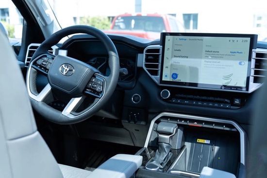 丰田坦途采用悬浮式中控大屏设计,中控屏从低配版8英寸到顶配版的14英寸,并且还提供有12.3英寸的全液晶仪表盘可供选择,支持CarPlay和 Android Auto系统。值得一提的是,新车全系标配Toyota Safety Sense 2.5智行安全系统,具备拖挂模式、蠕行模式、越野模式等多种驾驶模式。配置:22款丰田坦途SR标准生产日期22年1月,