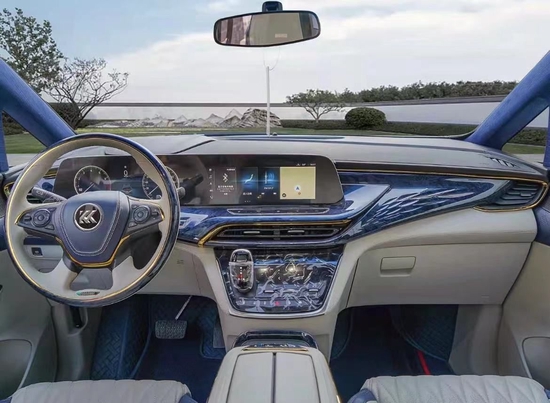 进入到驾驶舱可以看到内饰部分全部做了纳帕包覆,金典的米蓝色系犹如浩瀚的天空总能给人带来无限美好。并且在全车运用大量的黄金元素并结合奢华的盛唐国风,细节中彰显尊贵。经典的大连屏也是十分帅气,在主副驾驶扶手箱下方还有隐藏的车载压缩冰箱,可以满足一车人不同的饮水需求。欢迎拨打24小时看车热线:13550036896 许经理,微信同步