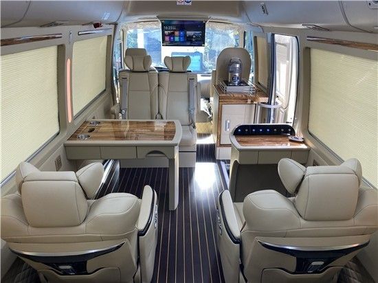 窗帘内侧可以加装LED蓝色灯光,车内立柱加装LED灯光,台阶上也可以镶嵌LED灯光,显示品牌坐标等。同时还可以在通道来两侧增加LED蓝色灯光。我们都知道,光是最能衬托氛围的选择,对车内灯光的改装可以带给我们独特的视觉感觉,营造出或温馨或者淡雅的乘车环境。