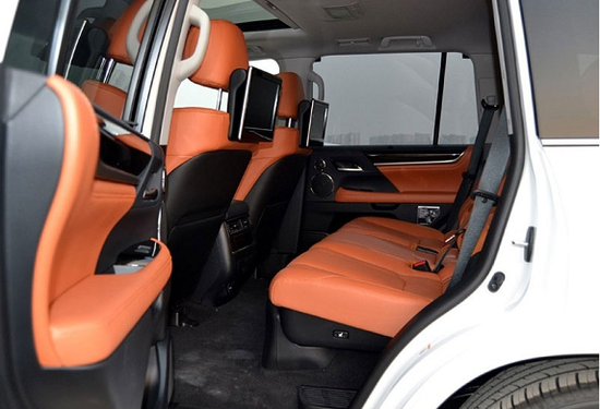 新款雷克萨斯LX (配置|询价)570不仅继承了品牌出色的商务属性,基于兰德酷路泽底子打造的硬派架构也让车辆在越野性能上丝毫不逊色于英菲尼迪QX80 (配置|询价)以及路虎揽胜 (配置|询价)等硬派越野车型,针对外观,动力进行了系列升级。新车前脸依旧继承了雷克萨斯家族的大尺寸纺锤式进气中网,内部结构由现款车型的多层次横幅饰条调整为横向连狙式的熏黑饰板外围采用镀铬镶边。搭配两侧回旋镖造型的led大灯组,整体视觉效果更显精致沉稳。