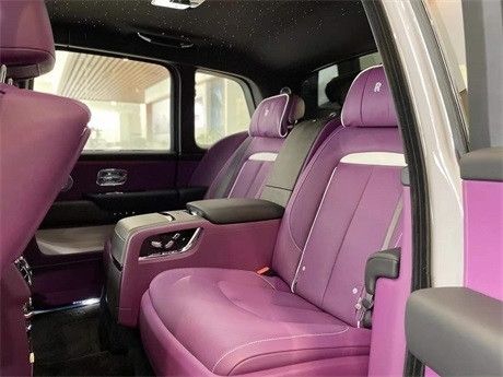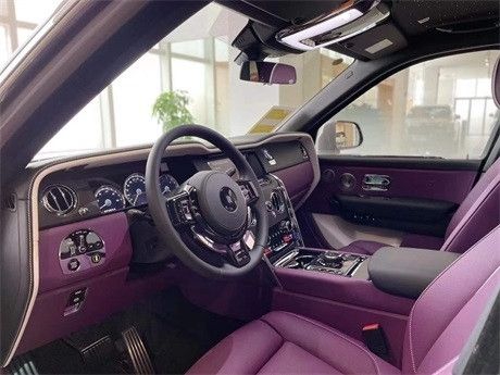 劳斯莱斯库里南 现车消费税 外观:风暴灰 内饰:定制紫-黑 选配:四座 前后排座椅通风 流星顶 双腰线。