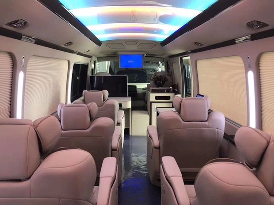 在车内的装饰设计上来说。丰田考斯特改装商务车,更能体现出尊贵与豪华舒适的特点,丰田考斯特采用的是后排三座,宽敞而又舒适,豪华首长座椅以及商务办公桌,让您的旅途不会因商务的安排而疲劳。我们追求得是为您带来更多的舒适之感,我们可以为您提供高短的私人订制,您可以根据自己的需求定制专属您的舒适座驾,我们将以专业的技术满足您对豪华版商务车的所有需求过程如下。