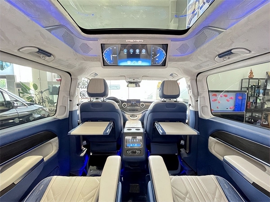 车内地板铺设有游艇级地板,后舱星光羊棉绒地毯,细腻舒适,在顶部氛围灯的照射下豪华高贵。车内还有丰富的舒适设备,包括有高品质独立音响系统,与液晶显示屏一起打造出至臻视听盛宴,带来院线级的观影体验。还有空气净化器保证车内空气的清新。
