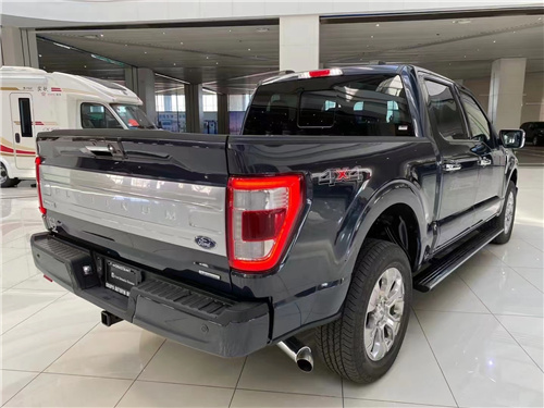 福特F150 (配置|询价)白金版血统纯正,拥有了无与伦比的车身刚度,整体车身肌肉感十足,威慑力表现的淋漓尽致。巨大的长方体蜂窝式格栅中间镶嵌着福特的大标,再加上全新设计的保险杠和发动机舱盖,使车头拥有了震撼的冲击感。车头给人一种很凌厉的气势,简约的线条勾勒出大而气派的感觉。