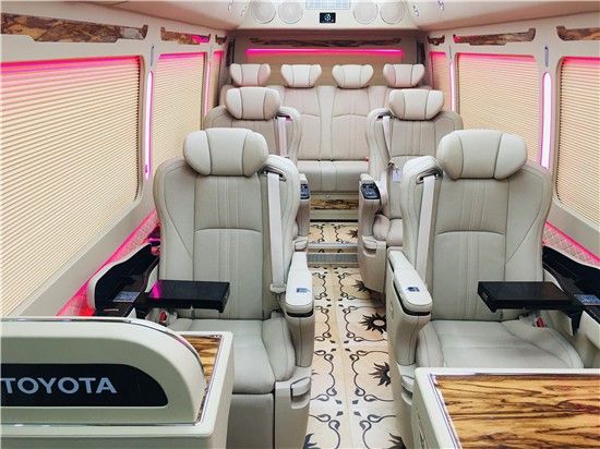 丰田考斯特奢华版秀外慧中,车内布局个性化设计,宽敞舒适,内饰采用欧洲流行设计。丰田考斯特改装商务车配备了全桃木材质的办公桌和全桃木外饰的4L冰箱,车为私密玻璃在配上吸顶式空气净化器,即便是在密闭的车内也能呼吸到新鲜的空气,使您乘坐时身心愉悦。